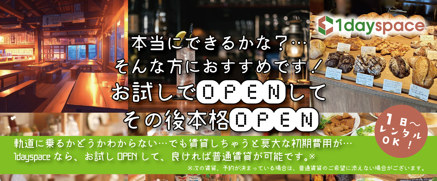 1日から夢をかなえる日貸し店舗